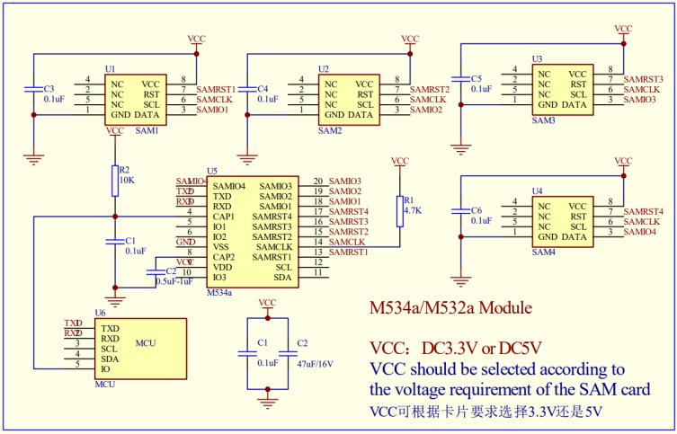 | M534a | UART接口 支持4個SAM卡 | SAM9600,SAM38400,ISO7816-4 CPU卡 T=0卡片 |