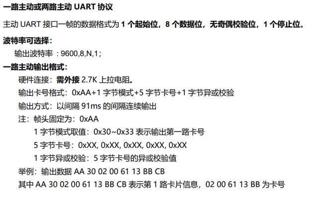 | M601a | UART接口,主機模式,從機模式,讀卡芯片 比M611a讀卡距離近一些 |